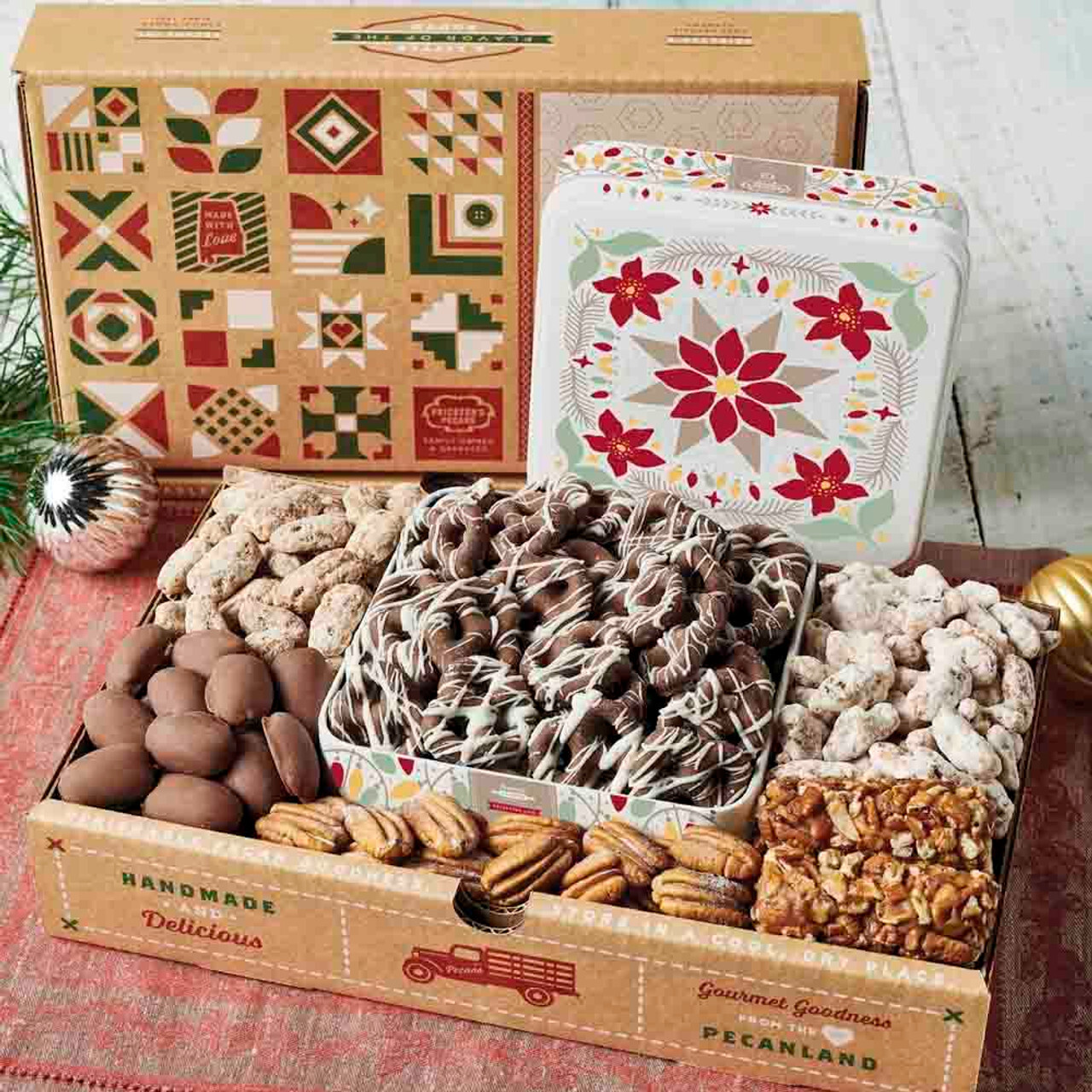 Packed with tried-and-true bestsellers like roasted & salted pecans, praline pecans, and milk chocolate pecans, this box is a safe bet when you want to please a crowd. It’s ideal for neighbors, teachers, or out-of-town relatives who crave Southern comfort food.