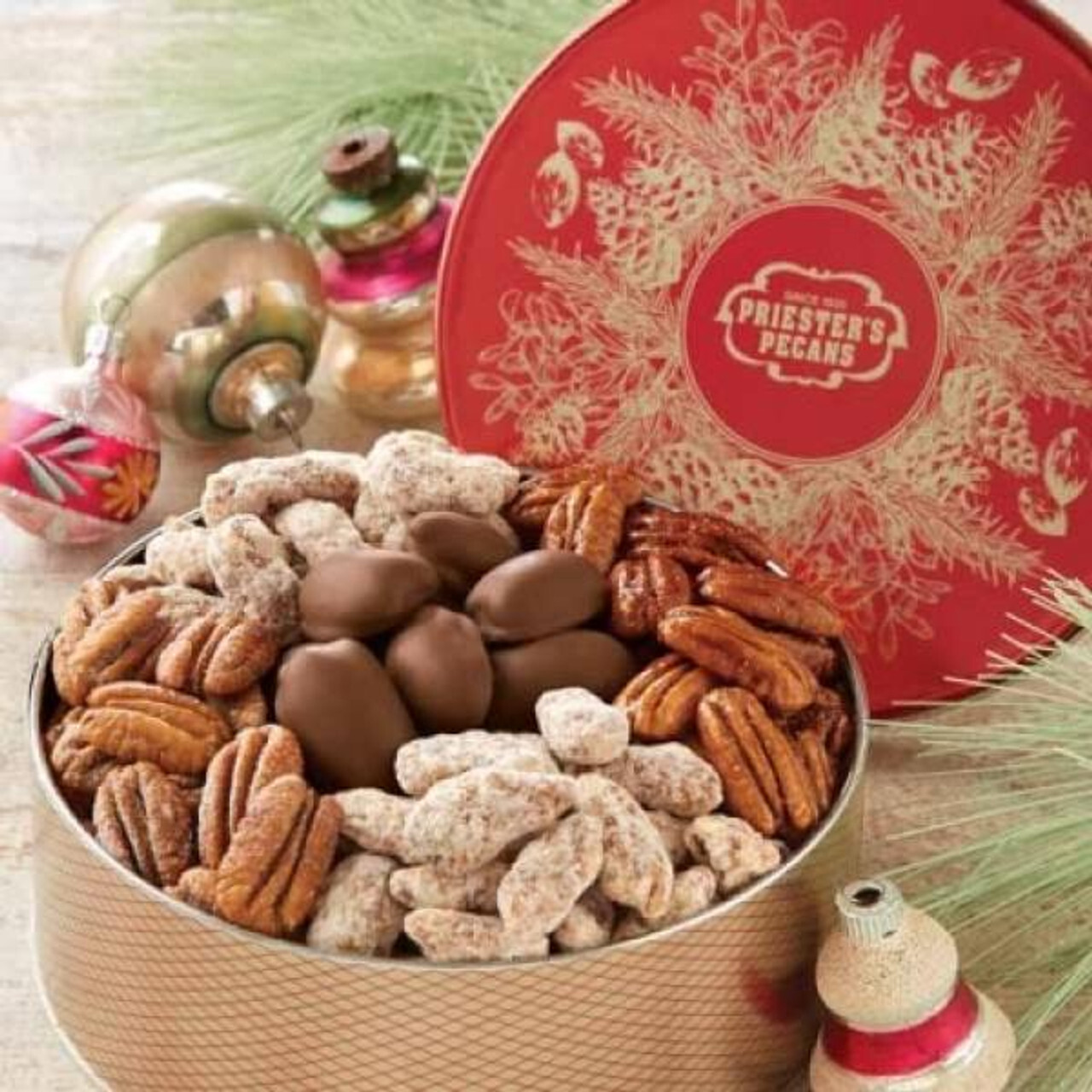 Looking to make a lasting impression? This elegant gold tin delivers Southern charm and gourmet flavor in every bite. Inside, you’ll find a premium assortment of Priester’s finest: Honey Glazed Pecans, Milk Chocolate Pecans, Pecan Divinity, Old-Fashioned Pecan Logs, Milk Chocolate Fiddlesticks, a Mini Pecan Pie, and a creamy Louisiana Praline. It’s the ultimate holiday or corporate gift for anyone who deserves the very best.