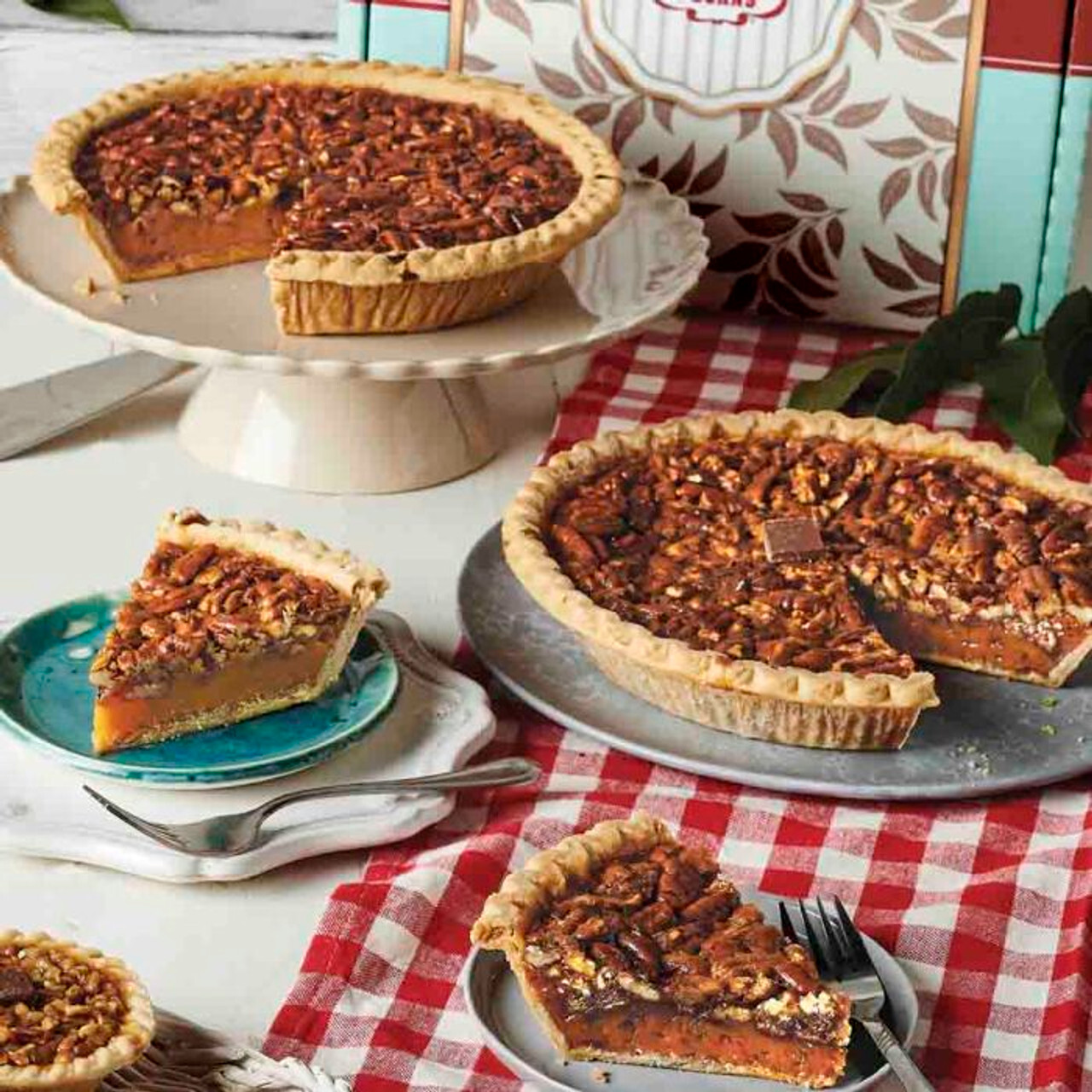 Two holiday favorites in one unforgettable gift! This festive set includes our Seven Pecan Favorites Tin—featuring Milk Chocolate, Praline, White Chocolate, Key Lime, Honey Glazed, Frosted Sugar, and Roasted & Salted Pecans—plus a 9" Deep Dish Old-Fashioned Pecan Pie, artfully designed and ready to gift. Whether it’s for a holiday party, family gathering, or thoughtful surprise, this duo delivers Southern flavor and festive flair in every bite.