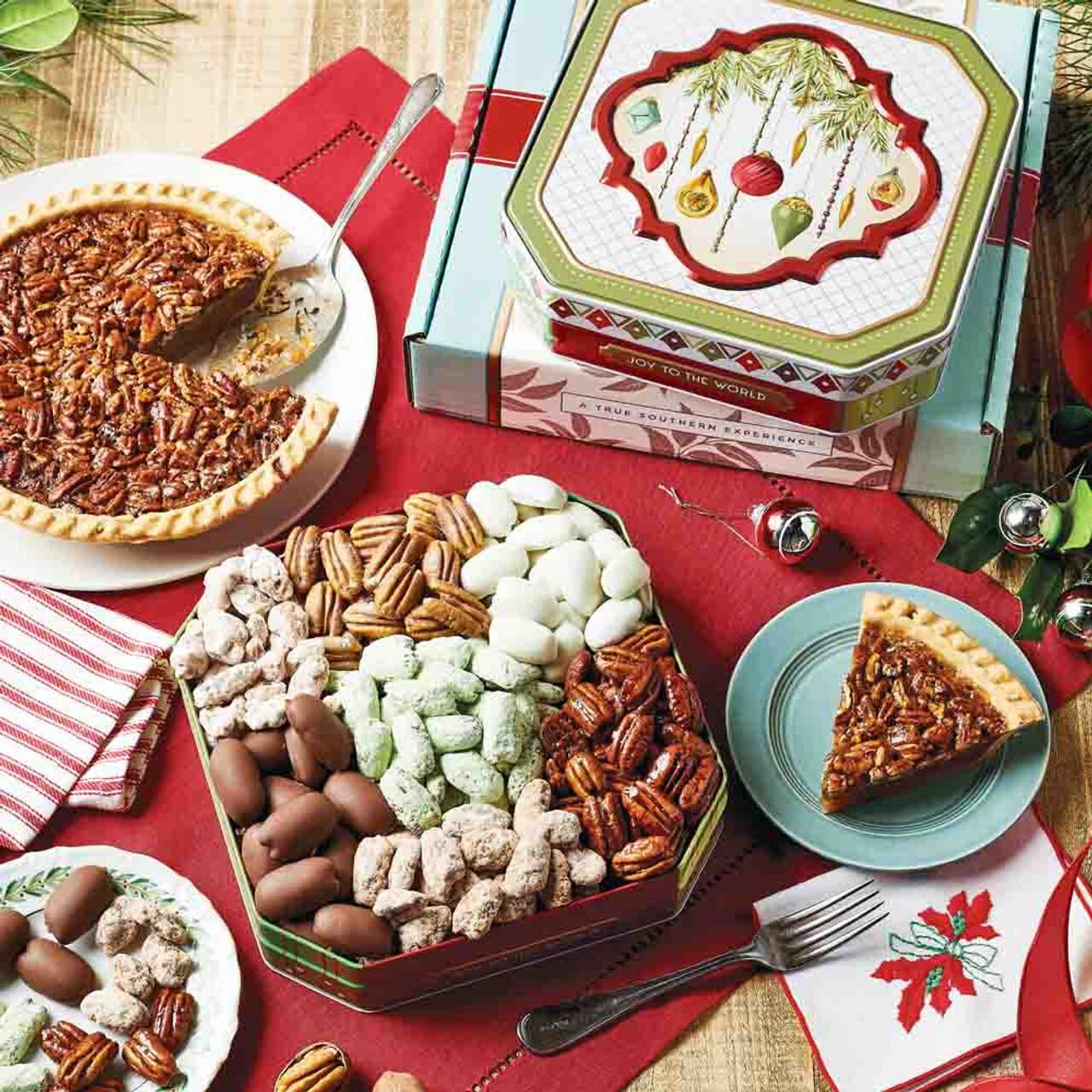 Want to go all out? Combine your favorite gift boxes into a one-of-a-kind tower. Start with a classic Old-Fashioned Pecan Pie Gift Box at the base, stack a party box or sampler on top, and finish with a decorative tin for the ultimate Southern surprise.