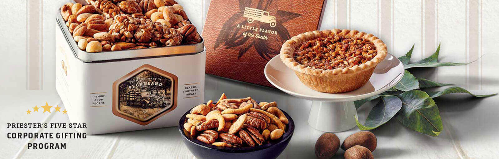 Priesters World Famous pecans, candies and baked goods make the perfect gift for business associates, customers, and employees. Our Corporate Gift Options, outlined below, can make your holiday ordering a snap.